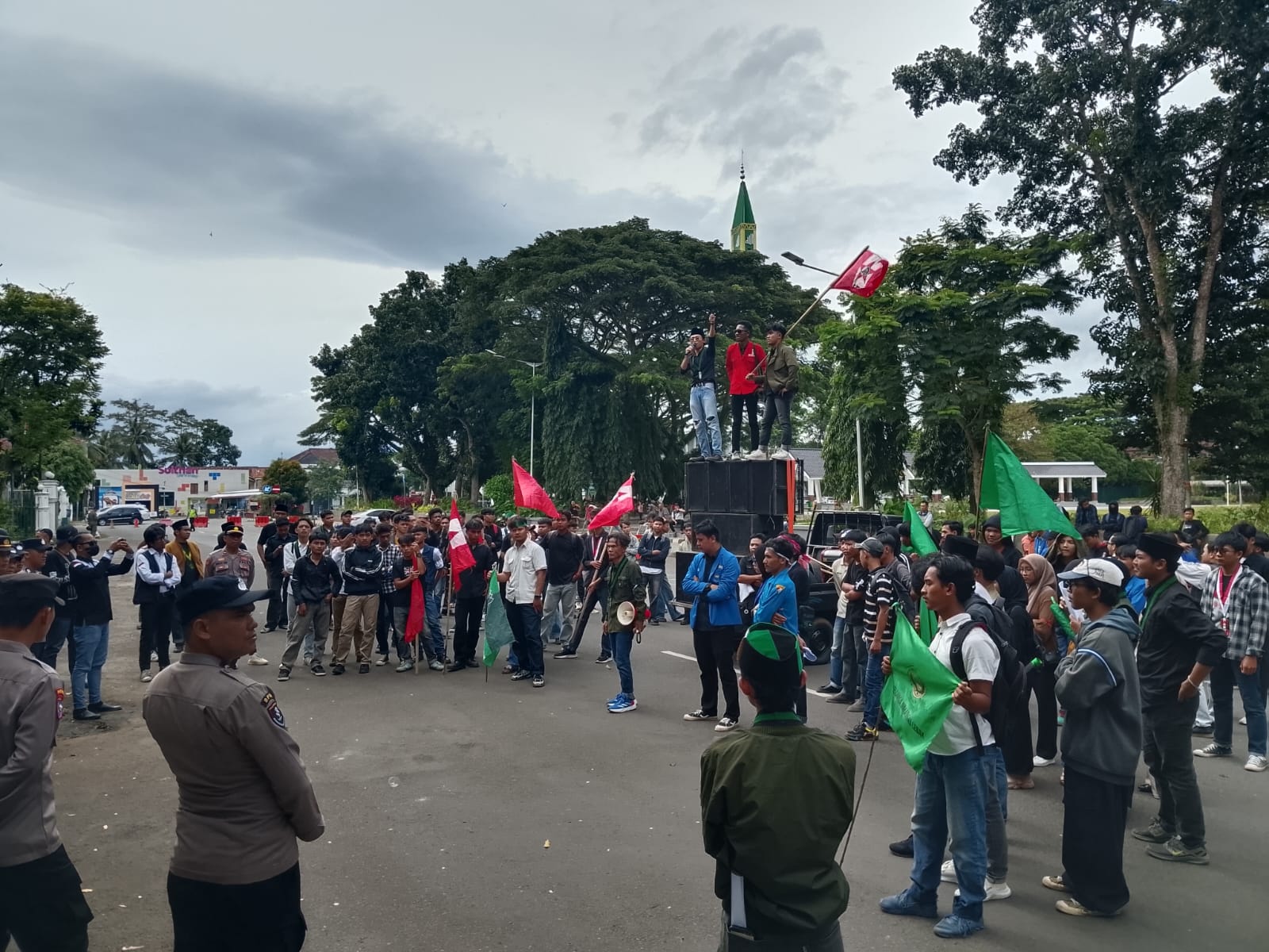 Dalam aksisnya, para mahasiswa itu mendesak transparansi penuh atas dugaan permainan tender dalam pembangunan rehabilitasi Alun-alun yang memakan anggaran Rp 5 miliar, serta membuka dokumen perencanaan dan pelaksanaan proyek kepada publik. Para pendemo itu juga minta agar APH turun untuk melakukan audit dengan transparan anggaran pembanguan alun-alun.