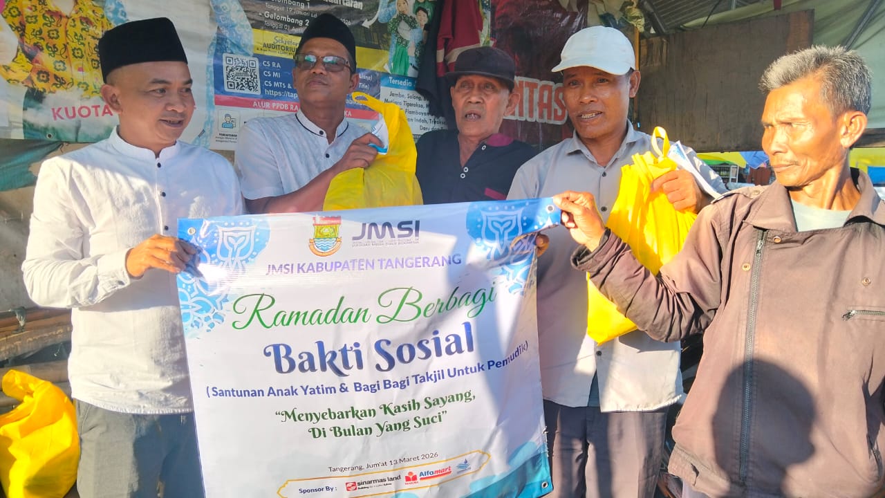 TANGERANG.INTTI.ID–Semangat berbagi mewarnai kegiatan yang digelar Jaringan Media Siber Indonesia (JMSI) Kabupaten Tangerang, Jumat (13/3/2026). Organisasi media tersebut menebar kepedulian melalui rangkaian kegiatan sosial Ramadan.