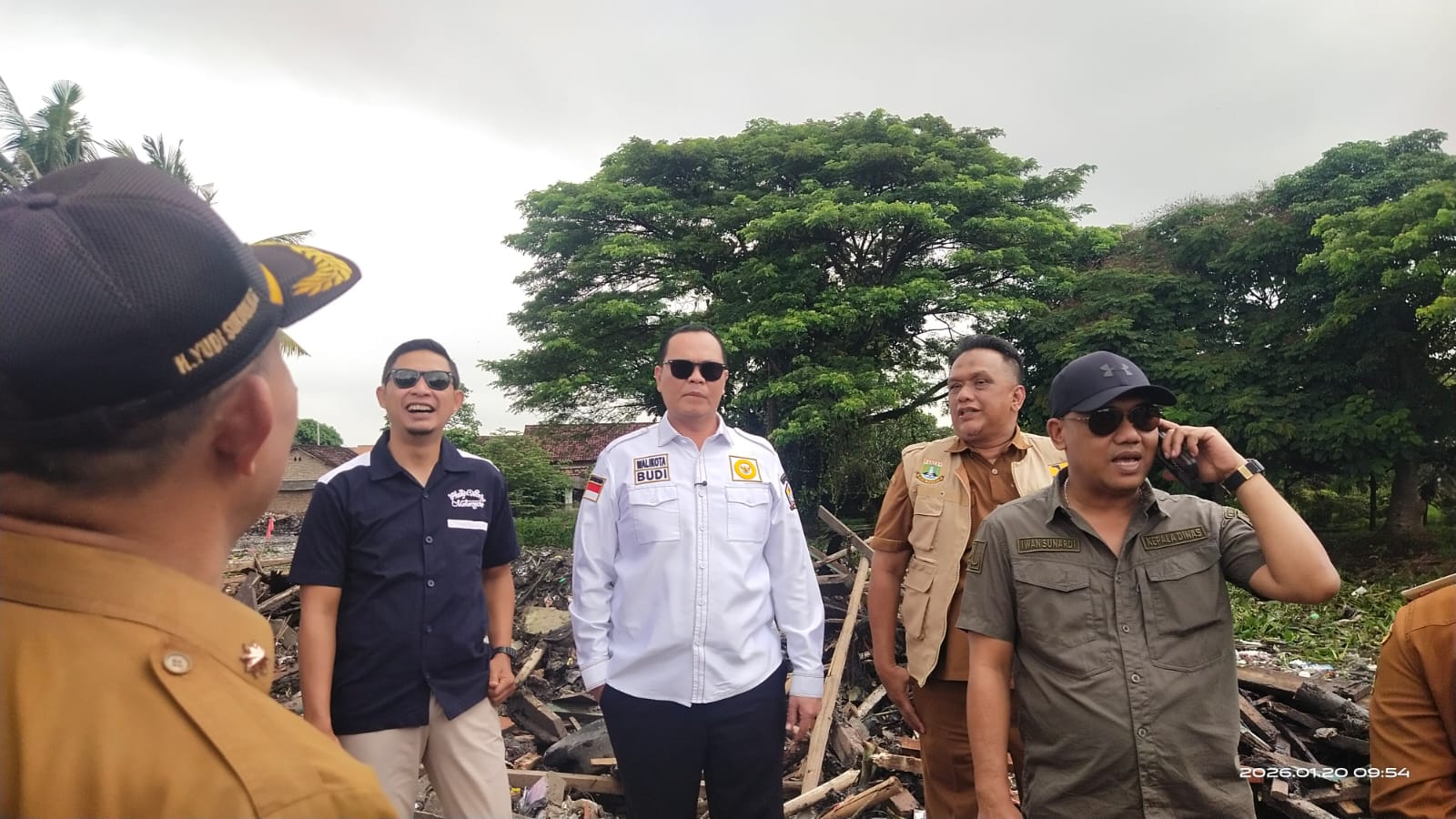 Wali Kota Serang Budi Rustandi meninjau penertiban puluhan bangunan liar (bangli) yang berada di sepadan Sungai Kroya, Selasa (20/1/2026).
